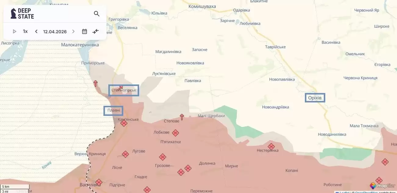 Противник ведет бои тактического уровня и в районе Плавней, и в районе Степногорска, в основном в южной части этого населенного пункта, но де-факто концентрирует свои усилия с тем, чтобы значительно увеличить давление на защитников Орехово. Бои в районе Щербаковки, Малых Щербаков, я думаю, являются тем самым подтверждением.