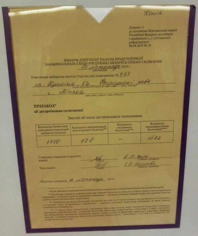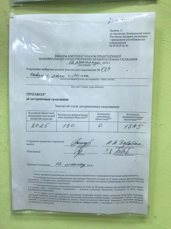 Несколько фотографий протоколов опубликовал телеграм-канал "Выборы. Беларусь", где такая же ситуация наблюдается на других избирательных участках Минска: