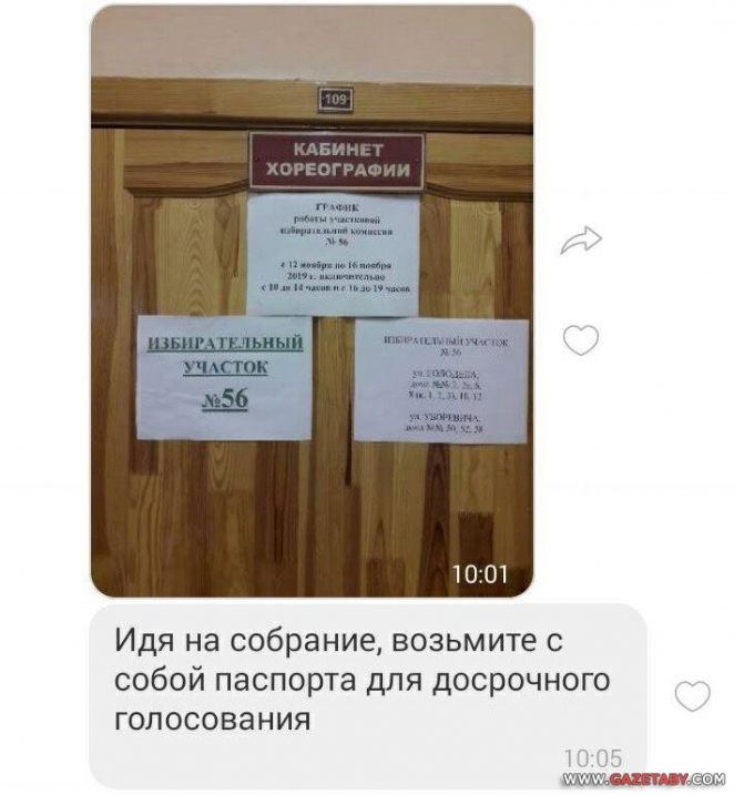 В одной из школ Заводского района Минска на этой неделе должно пройти родительское собрание. За день до этого по вайберу родителям разослали сообщение о необходимости взять с собой «паспорта для досрочного голосования».