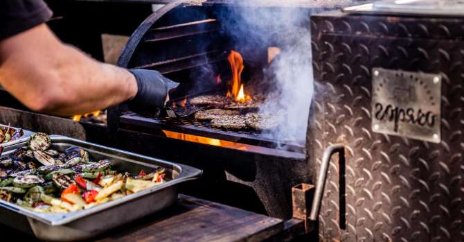 Грили на колесах помогут обеспечить ваших гостей жареным мясом. При этом они могут не только жарить, но также коптить рыбу и мясо. В меню вы сможете включить хот-доги и бургеры.