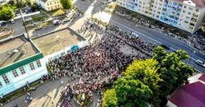 Лес людей. Сколько брестчан пришло послушать Тихановскую – вид сверху