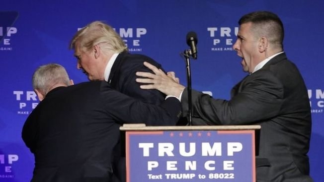 О том, какую угрозу заметили агенты, не сообщается. Через несколько минут Дональд Трамп снова появился перед публикой.