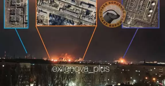 В Приморске, согласно спутниковым снимкам, выгорели 40% мощностей для хранения нефти.